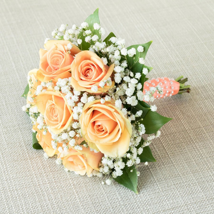 Celebrate your special day with the elegant Sound of Love Bridesmaid Bouquet from Cricklewood Flowers in Cricklewood. Designed to beautifully complement the bridal bouquet, this hand-tied arrangement features radiant orange roses at its heart, delicately framed by soft, cloud-like gypsophila. The vibrant orange tones bring warmth, joy and energy to your wedding photos, while the white gypsophila adds a romantic, airy finish.