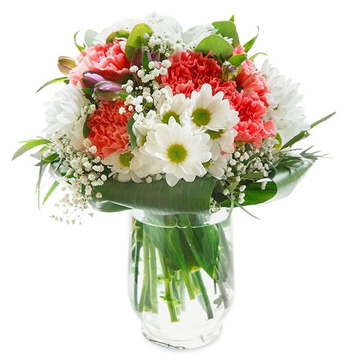 Beautiful arrangement with fresh flowers. Delivery was quick and efficient.
